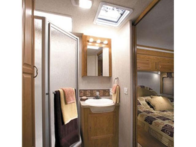Ideal for four adults and one child. The single slide-out design offers a spacious living area and a large exterior storage bay. Powered by a Ford/Chevy (6.8/6.0 liters) gasoline engine, 5 Speed Overdrive Automatic Transmission with Cruise Control. AM/FM Radio – CD player, In-dash airconditioning in the drivers cab and living area. Power generator, range (stove), microwave, refrigerator, and a sink, shower & toilet. Cab-over Bed that can accommodate 2 persons, the Dinette can be converted into a single bed, and a permanent Bed located at the back of the vehicle.