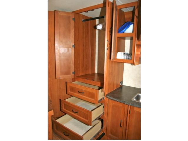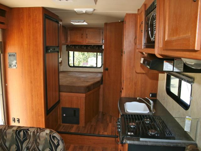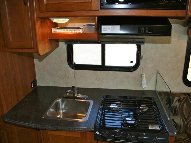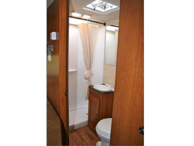 Extremely maneuverable, sleeping up to 5 with a rear queen bed and a dinette bed along with an over the cab bed for the kids. Road Bear RV brings you this RV with all the conveniences you'll need for the short get-away or extended trip, with a large storage bin underneath - 4 sets of clubs. A toilet, sink and shower, hot water heater, stove, microwave, fridge & freezer, the only question is how much fun are you going to have? The powerful Chevrolet V8 or Ford V10 gasoline engines are more economical than in the larger RV's and will move you along effortlessly while the air conditioning keeps you cool. Enjoy the outdoors and sit protected under the retractable awning!